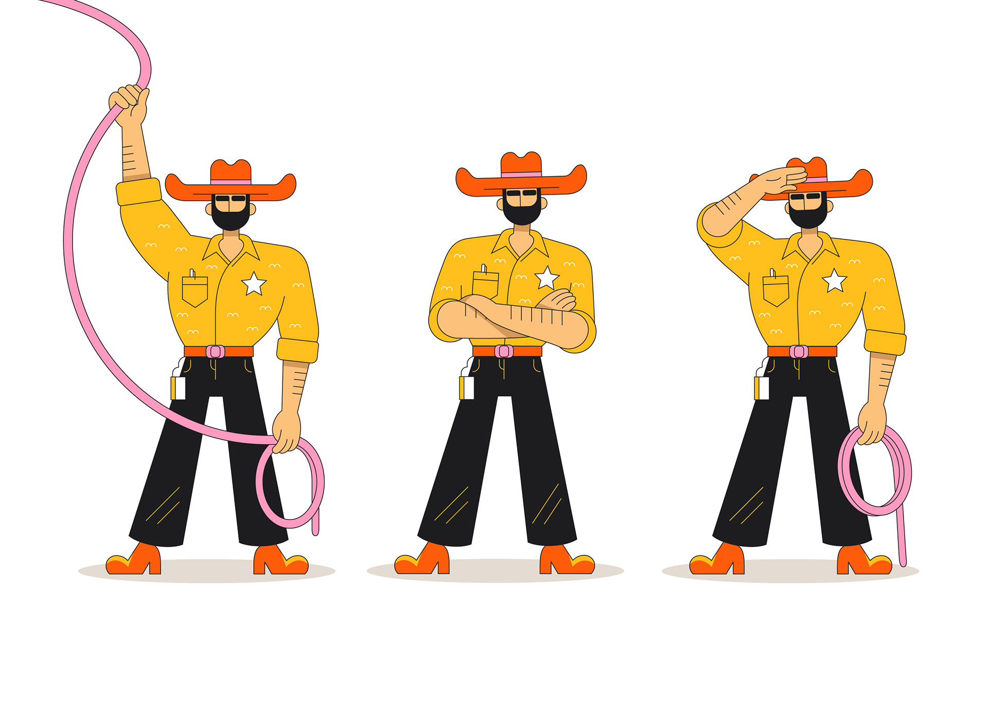 The re-branding of Lasso Security, a start up company that protects organizations from Generative AI threats. We decided to use a metaphor of a sherrif, that protects his wandering sheep. I worked on this project with a team of designers, serving as the lead illustrator.